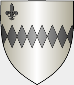 D’argent à la fasce fuselée de sable surmontée d’une fleur de lys à dextre