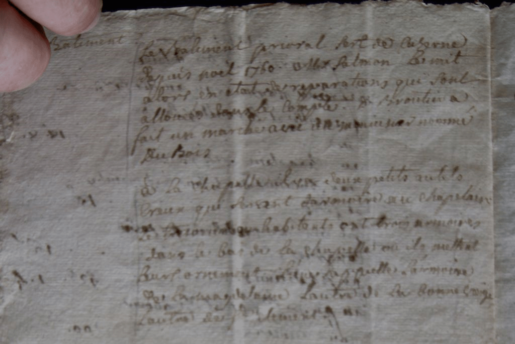 – Pour un jubé fait dans le chœur en de la Ste-Madelaine pour toutes choses trente livres cy : XXXll.