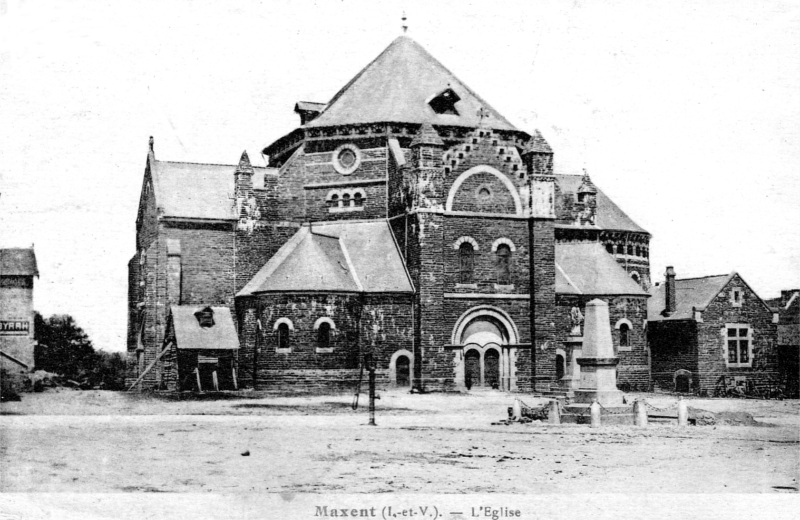L’église paroissiale primitive de Maxent est l’ancienne église conventuelle bâtie en 866 par le roi Salomon ; celui-ci la dédia entièrement qu’au Sauveur et cela en le seul souvenir de l’Abbaye de Redon.