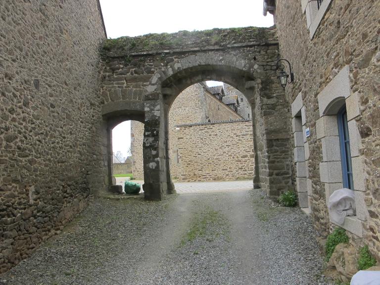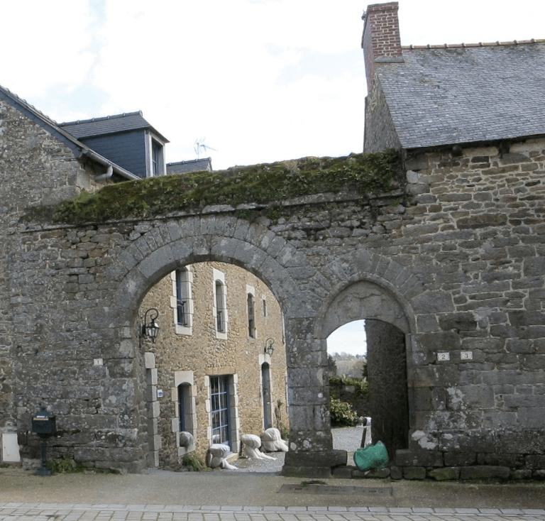 1552… une maison située à vis la porte de Tadain, en laquelle y a ung pressouez et une chambre au bout qu’est de la chapelenie de saincte Anne contenant cinquante trois piedz de longc et ung celier dessoulz ladite chambre et ung collombier situéz en un jardin contenant (un) demy journal de terre et joignant d’une part au chemin qui vient de Dinan à l’église de Tadain et d’aultre costé au chemin allant de la maison de Tadain à la fontaine Guillaume, d’aultre costé à terre de Guillaume le Moulgnier…