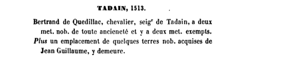 Ci-dessous la liste des autres teneurs de fiefs en Taden pour l‘année 1513 :