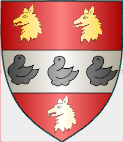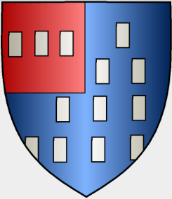 Armoiries de Janne Martin femme et compagne de Jehan Nicolas ci-contre ; fille de Gilles Martin et de Yvonne de Desert (des Erts) seigneurs de la Guerche en saint-Helen proche de Saint-Piat.