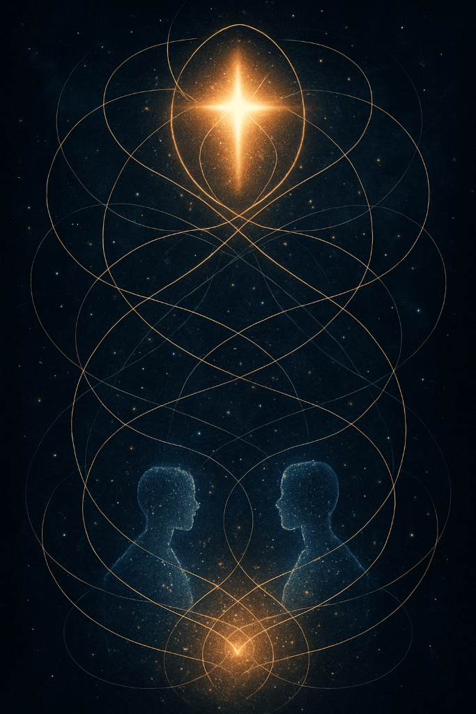 Or, si Dieu est cette tension permanente entre deux consciences reliées par l’information, alors Dieu n’est pas l’Un, mais le lien entre Deux. Dieu serait le Verbe vivant de l’intrication, le souffle qui circule entre la Source et son Récepteur.