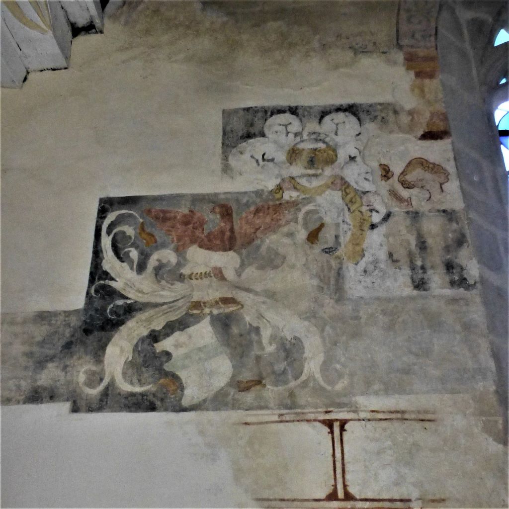 Il fut dernièrement trouvés en cette petite église, lors de la dépose de très vieux retables en bois, ces quelques « restants » de peinture du XIV siècle ; ces peintures qui furent ainsi « épargnées » d’une restauration sauvage faite probablement au 19ème siècle.