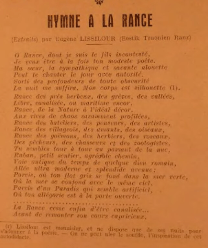 En son Circuit rose Eugène écrira des phrases lancées sous le ciel toujours bleu de notre chère commune de Lanvallay, pensée qu’il consacrera ainsi au Mont en Va, au Talard, aux Fours à Chaux, à la Ville es Oliviers, aux Salles, à la Vieille rivière, au château de Grillemont, à la Landeboulou, à Chantoiseau. Et même aussi au Saut à la puce assis juste au dessus des vieilles marnières de la Pétrôle.