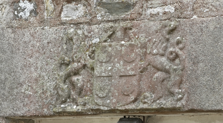 Celles-ci à gauche contiennent en totalité les initiales de François Grignard lui même lorsque à droite elles contiennent enlacées que les initiales des prénoms de ses deux épouses ; à savoir le F de Françoise Levesque sa première femme et le R de Rollande de la Bouexière sa deuxième épouse (Françoise Levesque née vers 1570, sa première femme, semble devoir être la petite-fille d’Antoine l’Evêque, seigneur du Pont-Harouart, ce mariage amenant ainsi chez les Grignart la dite seigneurie de Pont-Harouart).