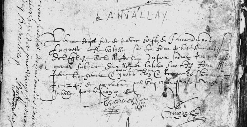 Le tout premier écuyer Grignard de Sansçavoir assis en la dite paroisse de Lanvallay fut donc l’un des nombreux bourgeons du tout premier seigneur Grignard de Champsavoy maître en ses terres de Saint-Judoce dès la fin du XIV siècle.