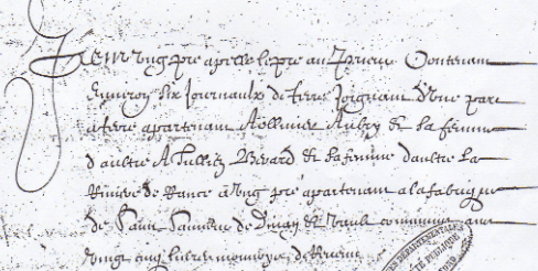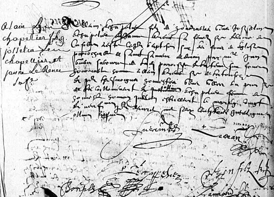 Cet acte précisera également que notre petit prieuré était ici même assis en la paroisse de lanvallay ; citant tout un ensemble de nouveau nom, cela avec certains déjà précités, il mettra en evidence les unions maritales ayant déjà unies entre elles ces mêmes différentes familles ; il en sera ainsi pour les Rolland/Marot.