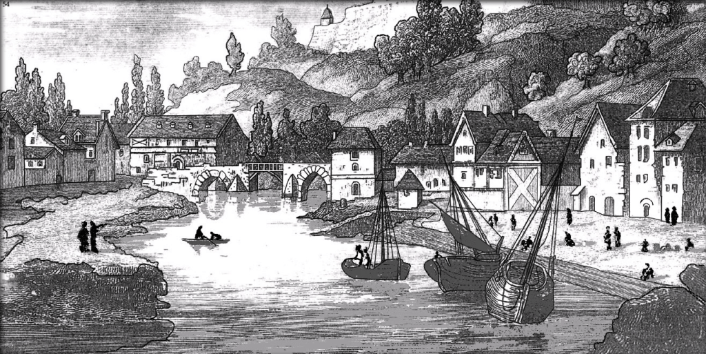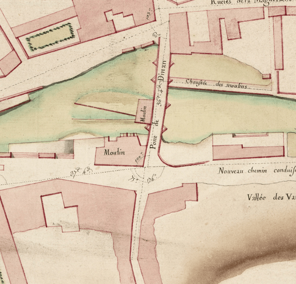 Conduist de la ville de Dinan à Dol (l’actuelle rue de la Madeleine), et d’autre à la rivière de Rance, de ung bout