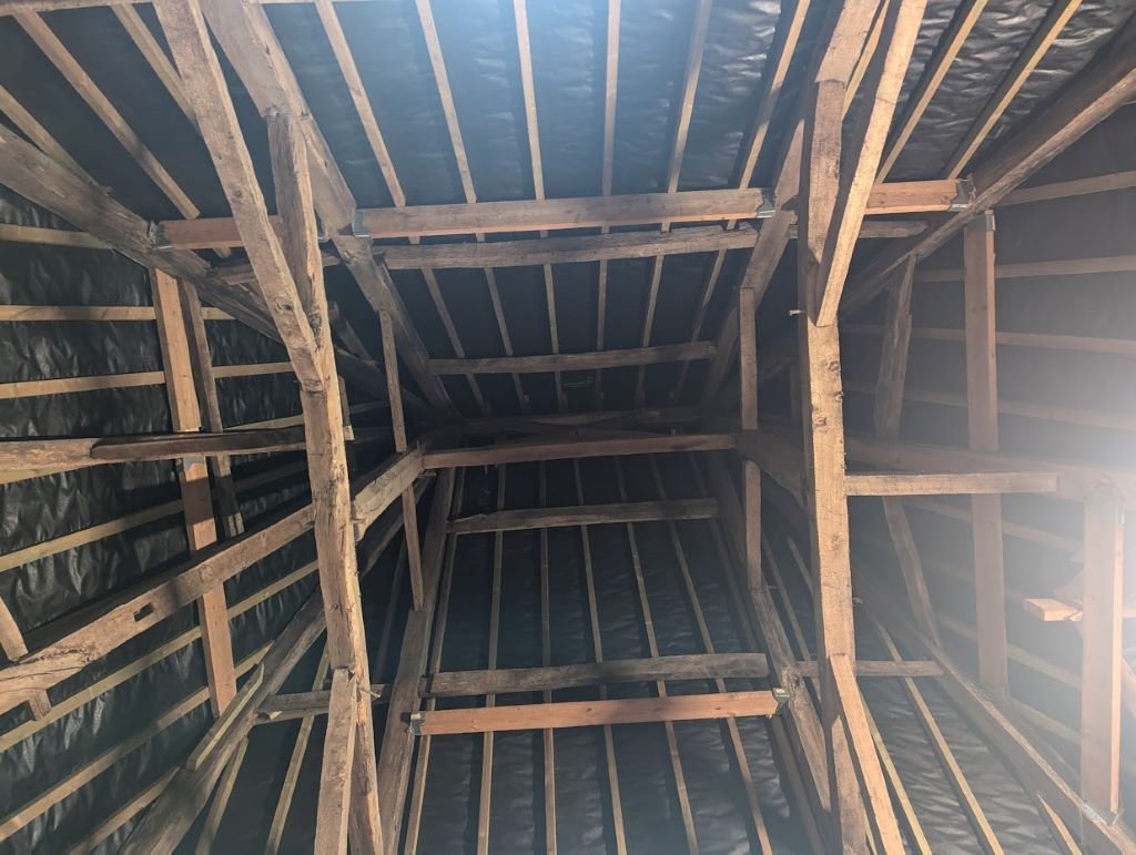 La restauration de la charpente du pavillon a entièrement respecté la charpente originelle cette dernière ayant été renforcée et non simplement remplacée ; elle est vraiment très belle.