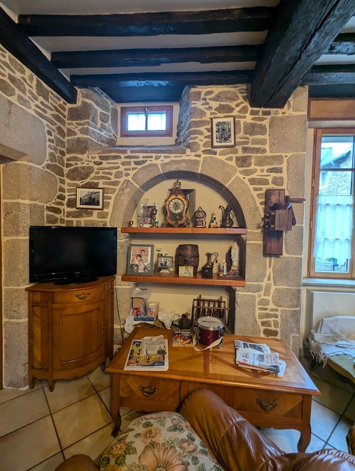 Celle-ci, assise hier ici à la droite immédiate de la cheminée, est aujourd’hui le dit agrandissement réalisé au xx siècle ; la belle porte la desservant est une porte en réemploi celle-ci desservant encore hier le dit grenier du logis.