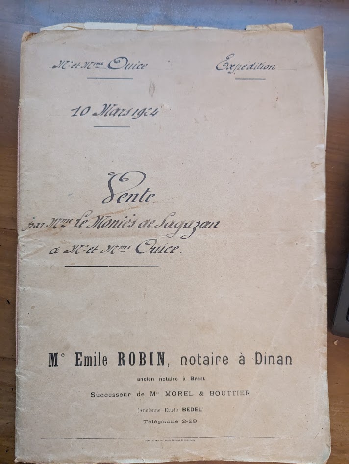 Aristide François Marie Le Monier de Sagazan décédé sa veuve, la susdite Marie Amélie Porquet de la Ferronnière, vendra à son tour la Ville Oris le 10/03/1924.
