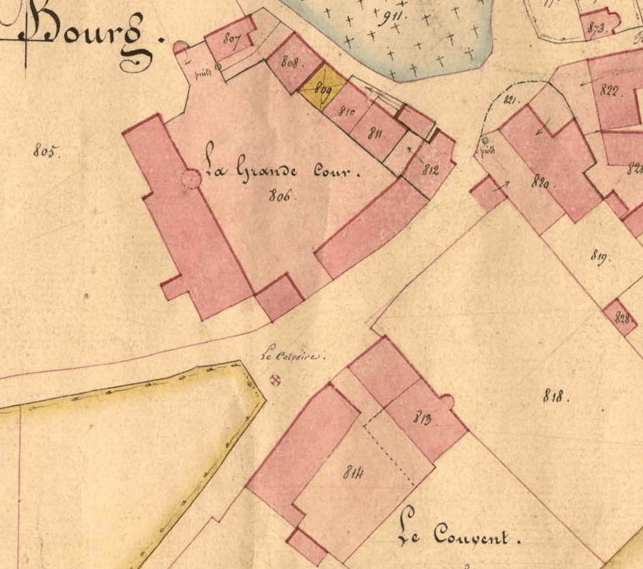 Plan cadastral de Taden implantant le manoir de la Grand Cour et le couvent de Bon-Espoir.