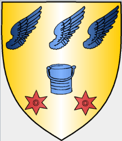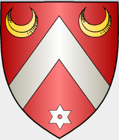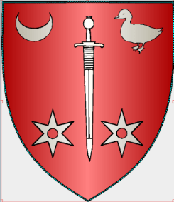 Ces Armoiries sont : D’azur à l’épée d’argent ayant à dextre et à senestre une étoile d’or, et en pointe un croissant de même.
