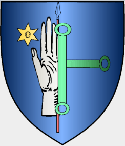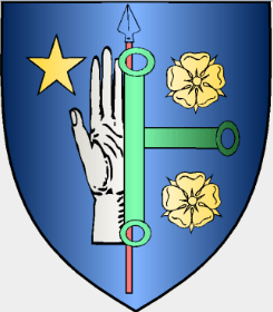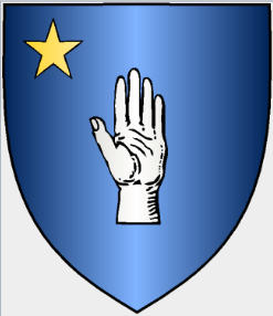 Ces Armoiries sont : D’azur à une main d’argent appaumée en pal accompagnée à senestre d’une étoile d’or à cinq rais.