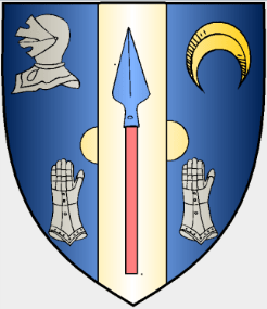 Ces Armoiries sont : D’azur à un pal noué d’or chargé d’une pique de gueules ferrée d’azur et acosté en chef à dextre d’un casque d’argent et à senestre d’un hausse-col d’or et en pointe de deux gantelets d’argent.
