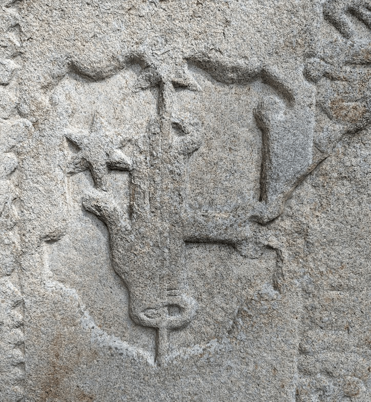 A l’inverse de l’étoile à cinq rais propre à la Main des Marot nous avons ici une étoile à six branches.