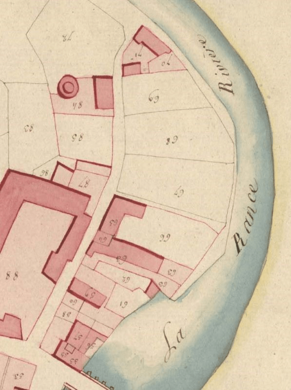 En la cour de la Tannerie Monsieur Jean Duchemin, l’un des dits héritiers Duchemin, professionnellement occupera en 1880 pour le dit Registre des Augmentations et Diminution un long bâtiment perpendiculaire à la Rance, bâtiment à un seul pan prenant toute la longueur du jardin, bâtiment absent sur les plans de 1811 mais présent sur ceux de 1844 ; à ce titre ce même bâtiment fut donc très probablement édifié dans la cour de la Tannerie à la demande du dit Pierre Sabot lui même. Ce bâtiment aujourd’hui n’existe plus et ne reste de lui que l’empreinte d’une cheminée.