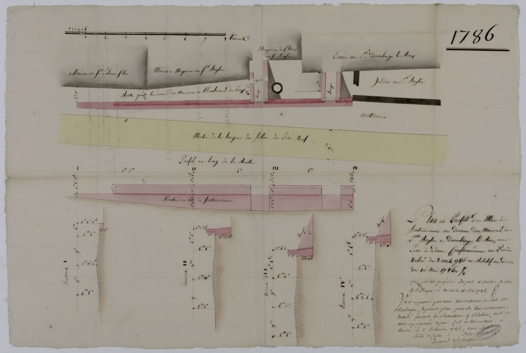 En échange de quoi les fermiers généraux Deshayes-Dohier promirent d’honorer chaque année la dite rente de 1560 livres payables en deux termes égaux, deux fois l’an. Un second acte transigé semble devoir accorder aux dits fermiers généraux une indemnité de 700 livres pour le dédommagement de la non jouissance du moulin ainsi qu’une deuxième indemnité de 100 livres pour le dédommagement de la non jouissance du four banal et de celles de ses dépendances [la chambre et le grenier du four à ban] ces deux indemnité étant toutes deux dues au titre de la ferme des sous-fermiers Lebigot et femme.