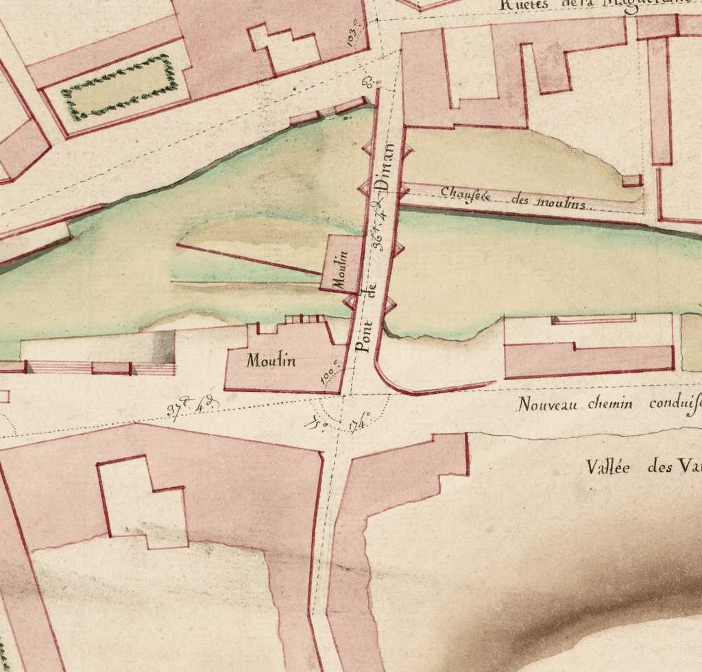 En effet les travaux de réhabilitation du four banal et du dit moulin ne semble cependant toujours pas avoir été réalisés lorsque ces nouveaux sous-fermiers prendront à leur tour possession de leur nouvelle ferme ; effectivement les susdits époux Pierre Guillaume et Carie Deshayes, nouveaux sous-fermiers donc, vont se pourvoir contre les consorts Deshayes, leurs fermiers généraux, cela pour les faire condamner à procéder aux réparations urgentes et nécessaires et du moulin et du Four l’état de vétusté de ces derniers empêchant toutes rentrées d’argent escomptées. Devant cette procédure les consorts Deshayes et Dohier n’ont semble t-il pas d’autre solution que celle de se retourner à leur tour contre le prieur Le Maistre lui même ; celui-ci peu après semble devoir démissionner de son poste de « prieur » du prieuré du pont à Dinan.