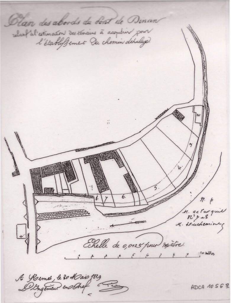 Ce plan implante les différentes maison frappées d’alignement pour améliorer la desserte du pont à Dinan
