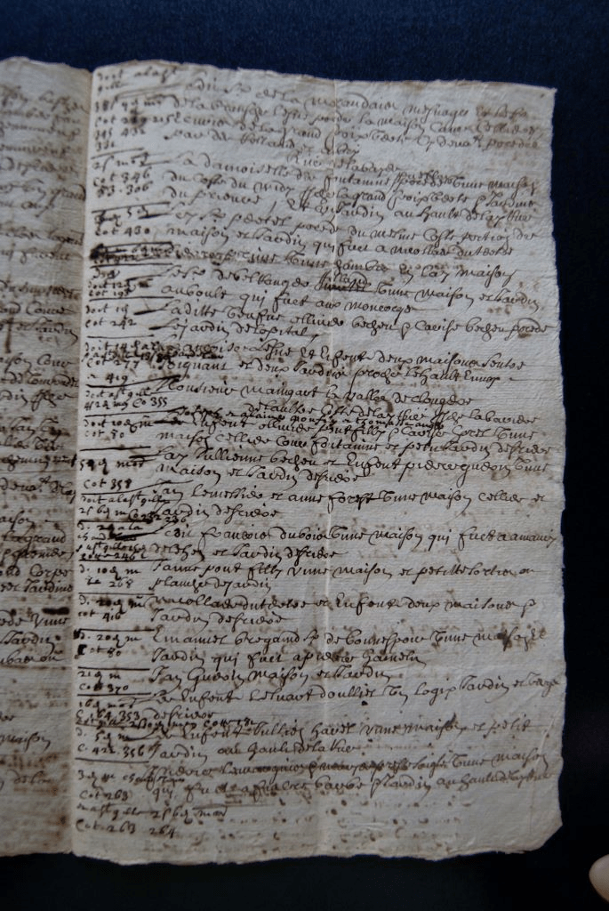 L’un des 5 feuillets du « Recept des tenanciers du faubourg de la Magdelaine« .