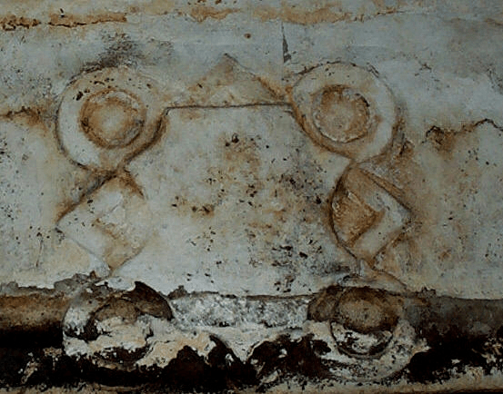 Linteau de cheminée aux armoiries muettes et comportant la date de 1571.