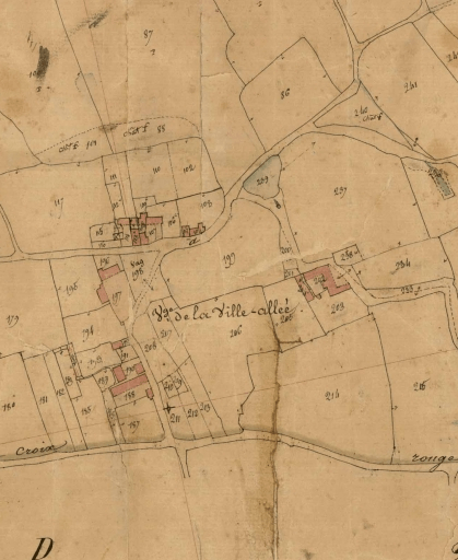 Il s’agit de la maison accolée à l’ancienne tannerie du dit sieur de la Ville Allée (avec la petite rambarde en fer blanc..