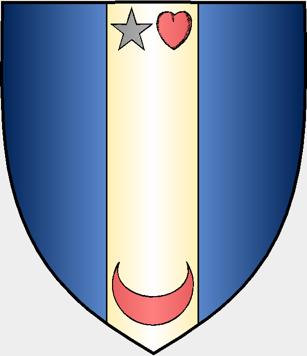 D’azur au pal d’or chargé en chef d’une étoile de sable, senestrée d’un cœur de gueule et en pointe d’un croissant de même.
