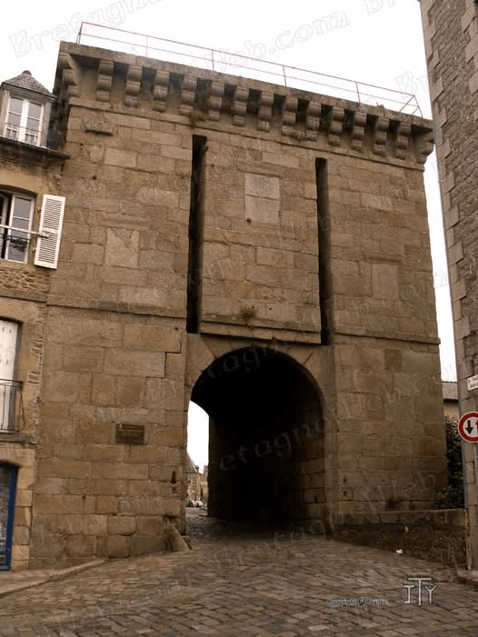 - Cette porte, dotée à l’origine d’un pont-levis, s’ouvrait vers la route de Rennes et remplaçait directement la fonction perdue du Guichet.