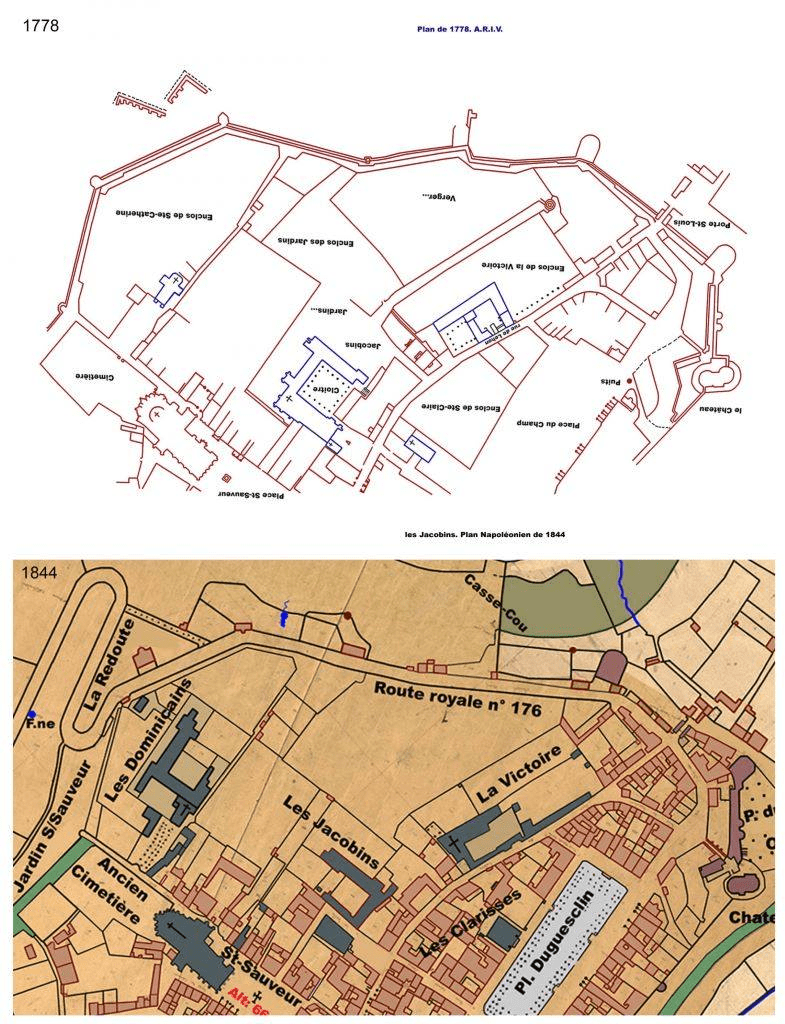 Les plans de 1778 et 1844 révèlent cette continuité :