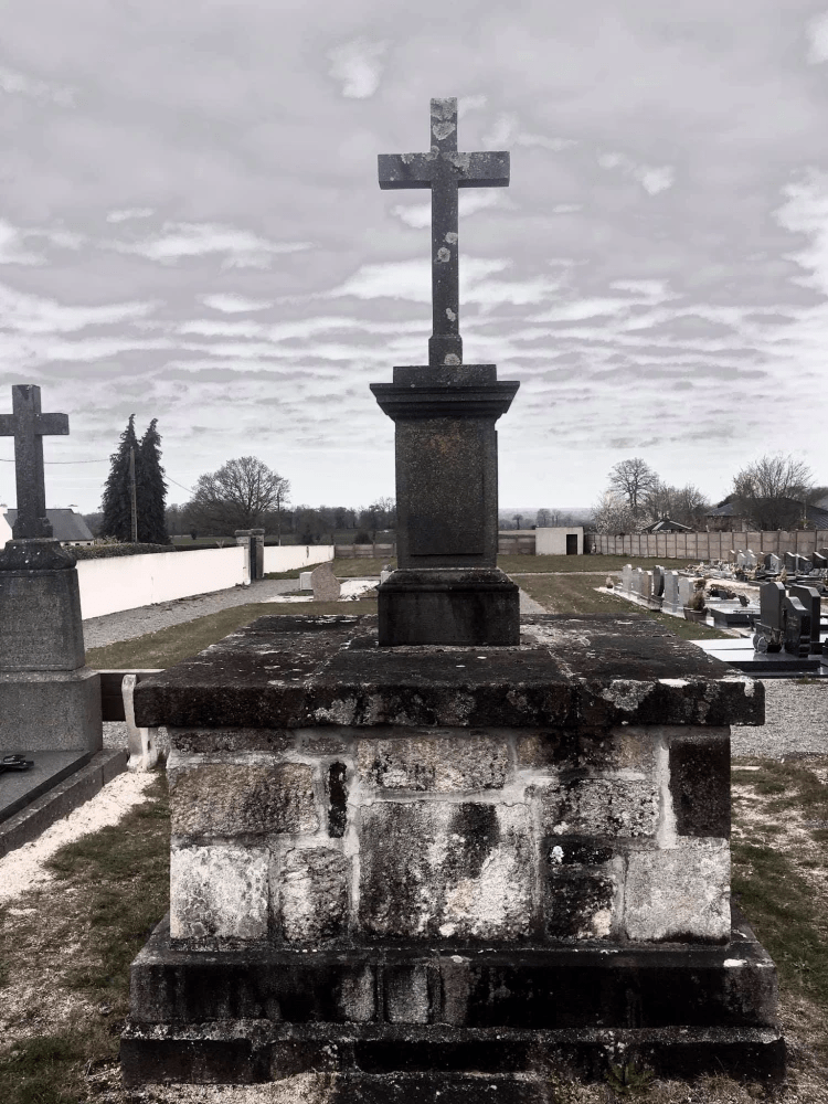 La commune ayant besoin de faire réaliser en son nouveau cimetière un caveau communal de deux places le travail sera réalisé en toute gratuité par monsieur Lejar celui-ci acceptant de faire ce travail en échange des dites croix « confisquées » …Le Maire propose ensuite au Conseil s’il accepte de faire construire un caveau communal à deux places, caveau qui ne coutera rien à la commune, qu’il y a une vieille croix dans le cimetière actuel et trois croix dans l’ancien, et qu’il a fait publier par trois fois différentes que les familles à qui appartiennent ces croix étaient priées de les faire enlever, et qu’elles restaient toujours là, et que monsieur Lejard Jean-Baptiste proposait, pour en être le propriétaire, de construire ce caveau. Le Conseil, après avoir ouï l’exposé du Maire, s’être transporté sur les lieux pour visiter les croix…