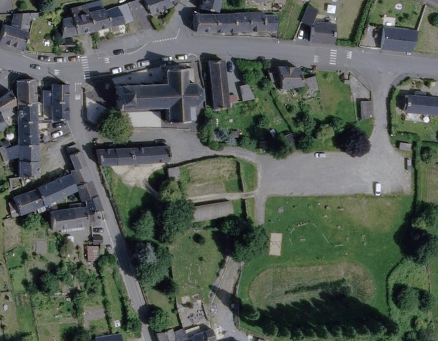 En 1844 la parcelle n°595 adossée au cimetière de l’église relève déjà de celle-ci. La parcelle offerte en 1883 à la commune de Saint-Solen par monsieur de Vicomte de la Vairie fut t’elle celle portant ici le numéro parcellaire 599 ?