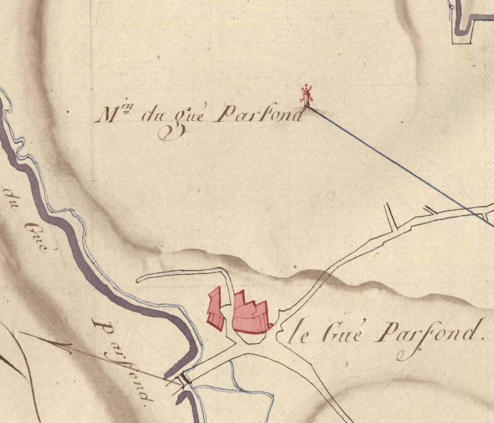 Si cette butte aujourd’hui n’est point nommée, si elle ne possède déjà plus aucune appellation au début du XIX siècle, en 1844 cette butte est nommé « Le Gué » notre hameau et notre ruisseau tous deux dits du « Gué Parfond » étant eux situés en contrebas.