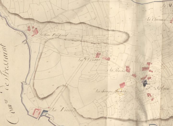 Si les seconds plans cadastraux réalisés en 1844 n’assoient ici même aucun bâti, quel qu’il soit, il en va tout autrement pour les premiers plans cadastraux dits napoléoniens qui eux seront réalisés en 1811.