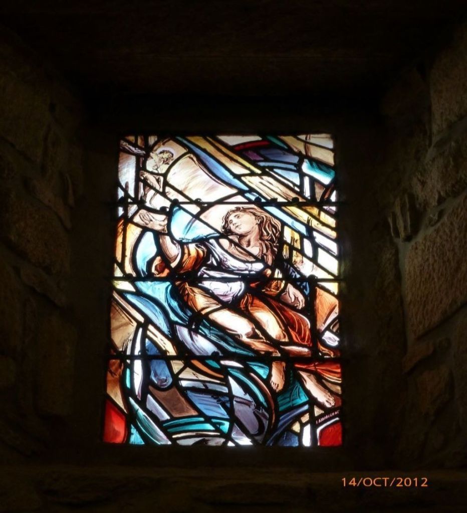 Ce premier vitrail sera mis en place en Septembre 1947 jour du baptême d’Anne, petite fille de Robert Zunz ; François Décorchemont refusa d’être rémunéré pour ce travail.