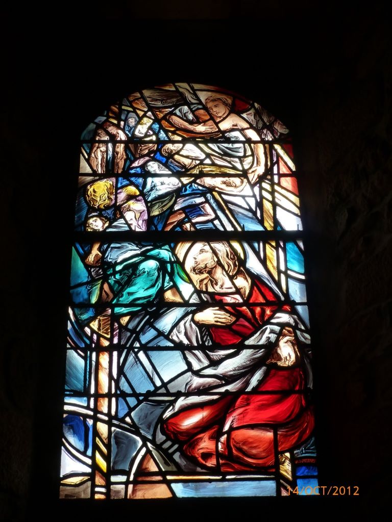 Les deux autres vitraux, commande de Mme Robert Zunz, ont été offerts par elle à l’ Eglise de Tressaint et mis en place à la Toussaint 1949.