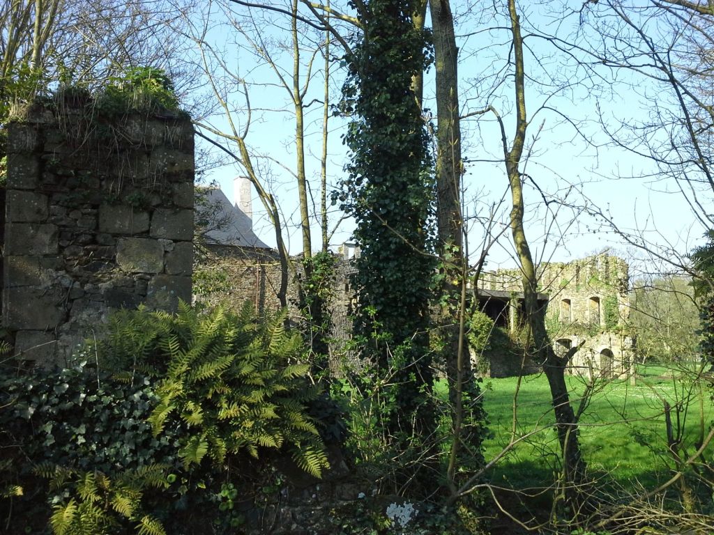 Ce que nous apercevons donc à droite, allant vers nord, sont peut-être les ruines de l’ancienne aile orientale, bâtiments conventuels édifiés au XVII ou au XVIII siècle. Photo réalisée en extérieur de la propriété.