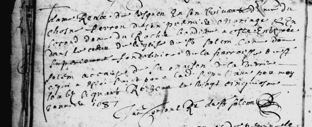 Tous deux s’uniront à Rennes, le 13/05/1649. Cet acte sera rédigé en l’Etude notariale Berthelot/Mahé.