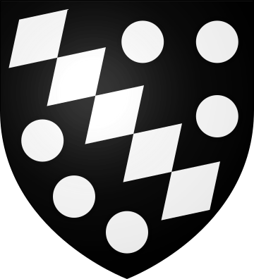 De sable à la bande fuselée d’argent accostée de six besans de même.