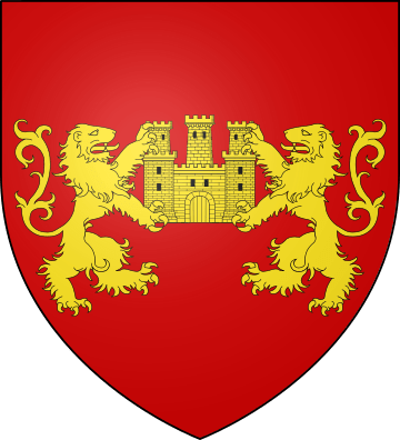 De gueules au château sommé de trois tours et supporté de deux lions, le tout d’or.
