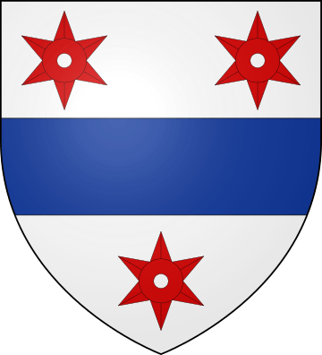 D’argent à la fasce d’azur accompagnée de trois molettes de gueules
