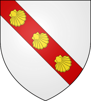 D’argent à la bande de gueules, chargée de trois coquilles d’or, posées dans le sens de la bande.