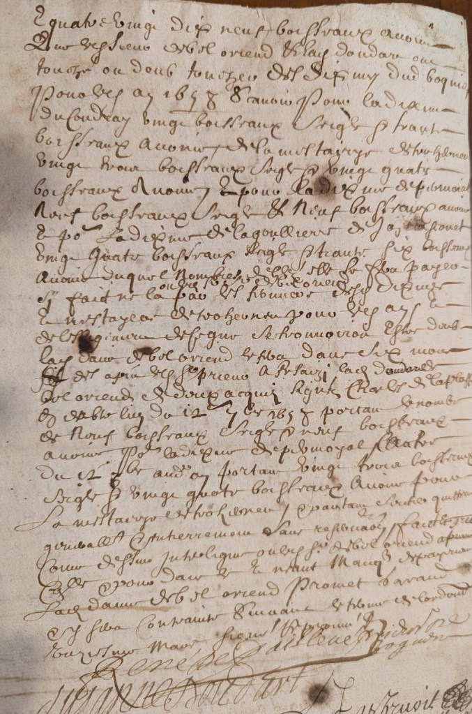 💡 Voilà pourquoi cet acte est si précieux : il ne livre pas seulement un nom ou une dette, mais une échelle économique concrète. On comprend ce que représentait une dîme : non pas des chiffres abstraits, mais des charretées de sacs de grain, pesant lourd dans la vie quotidienne.
